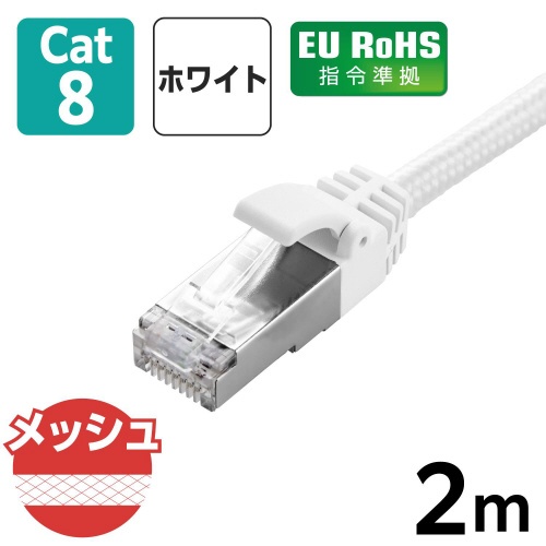 2. LANケーブル CAT8 2m メッシュ ホワイト