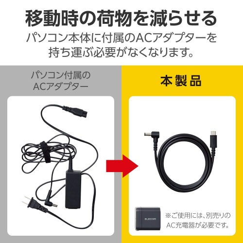 ノートパソコン充電ケーブル 2m DC丸型 黒