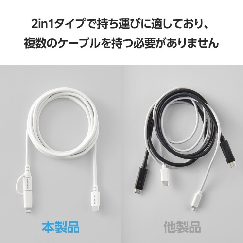 2. 2in1ケーブル USBC ライトニング 2m 白