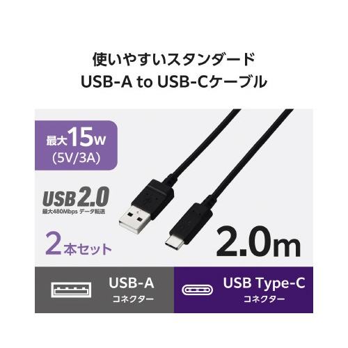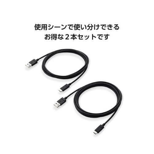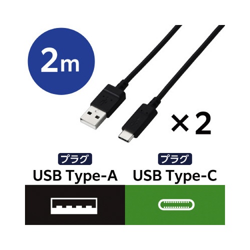 タイプCケーブル AtoC 2m 2本セット 黒