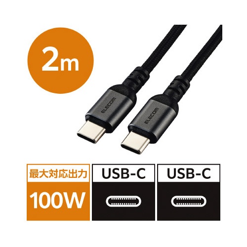 2. タイプCケーブル 2m ナイロンメッシュ 黒