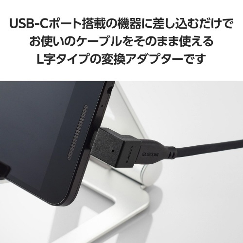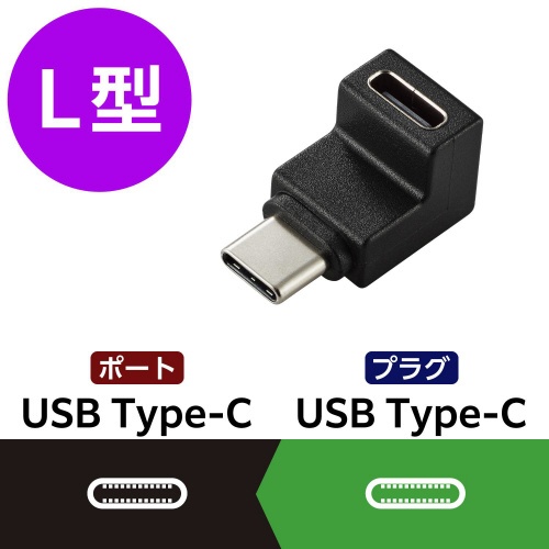 USB−C L字 変換アダプタ 縦向き ブラック