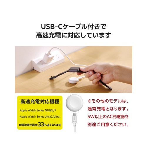 AppleWatch充電器 0.3m 巻取り 白
