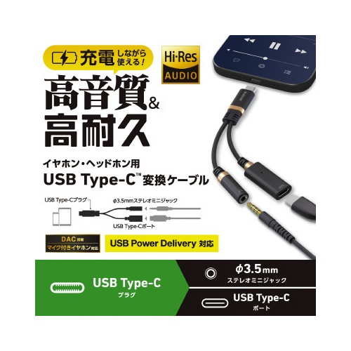 2. タイプC イヤホンジャック変換 高耐久 黒