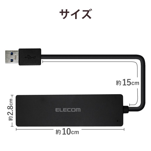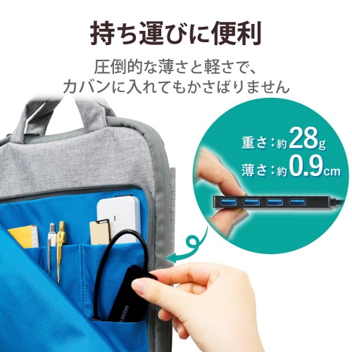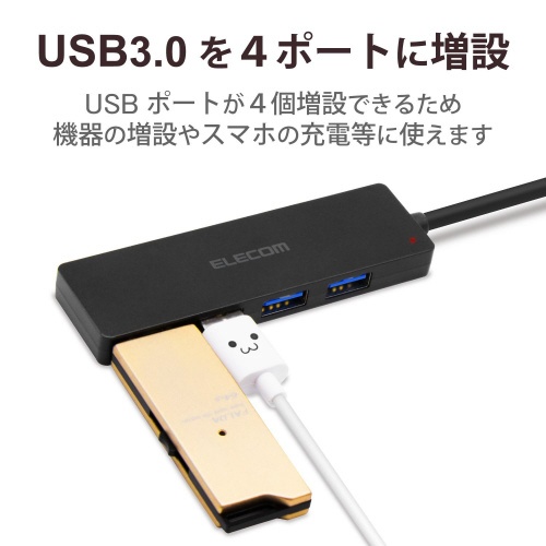 USB3.0ハブ 4ポート 薄型 ブラック