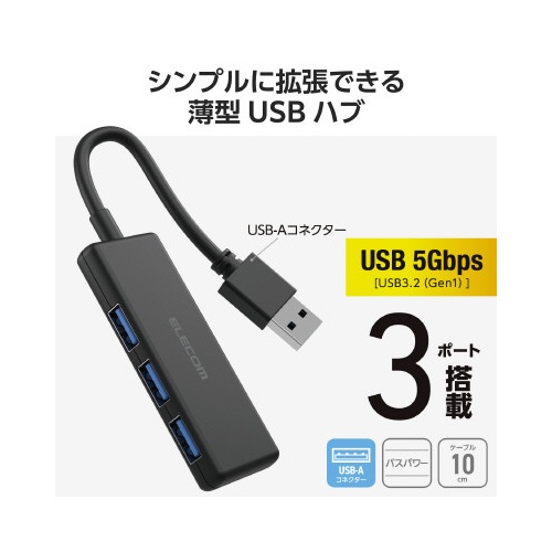 USBハブ(USB−A×3)バスパワー ブラック