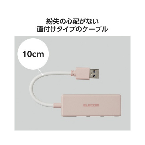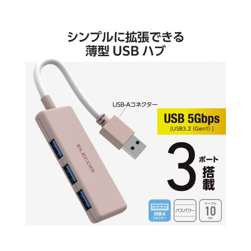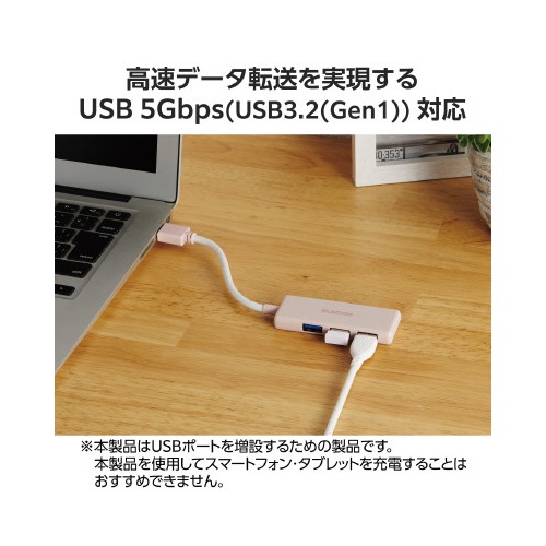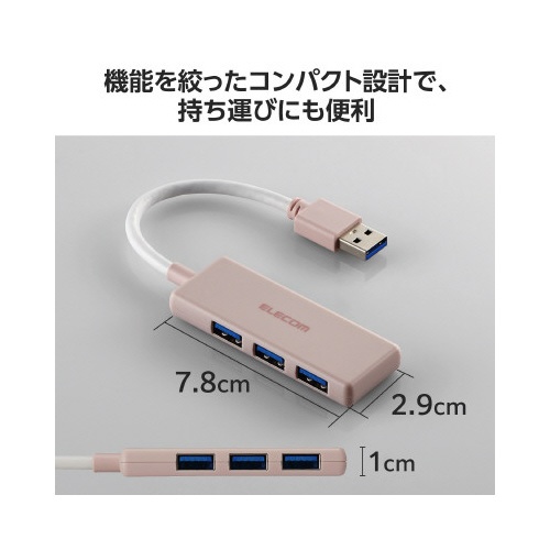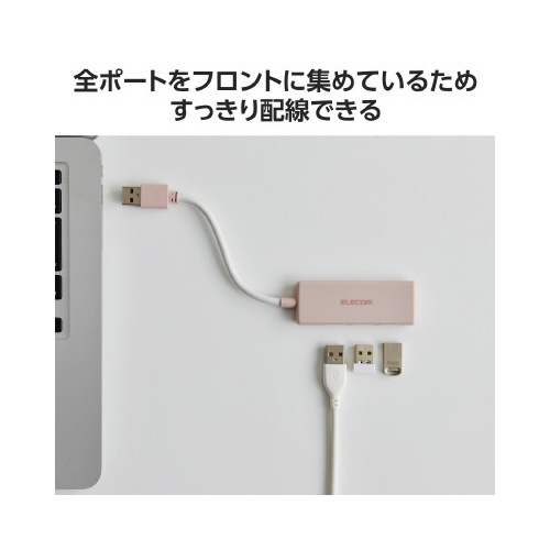 USBハブ(USB−A×3)バスパワー ピンク