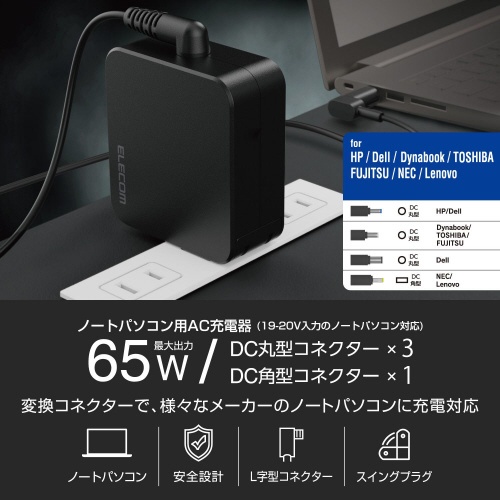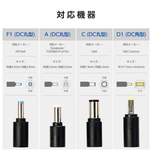 ノートPC向けACアダプター 変換コネクタ4種 黒