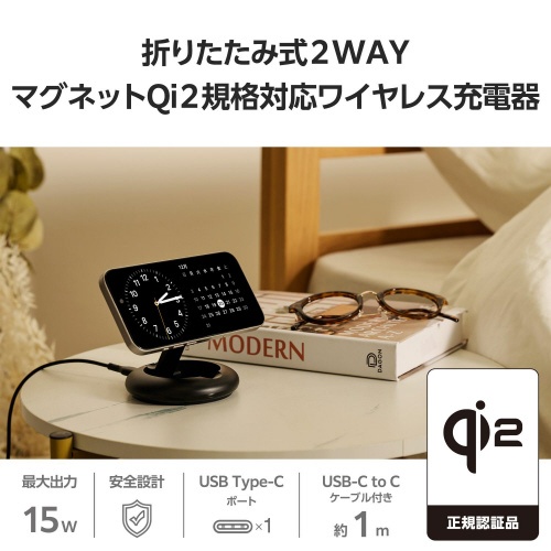 ワイヤレス充電器 Qi2対応 ブラック