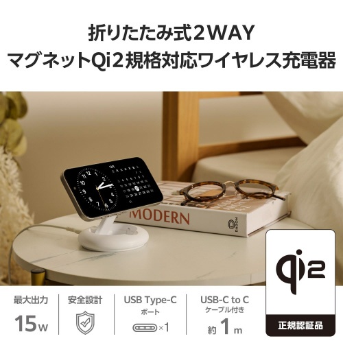 2. ワイヤレス充電器 Qi2対応 ホワイト