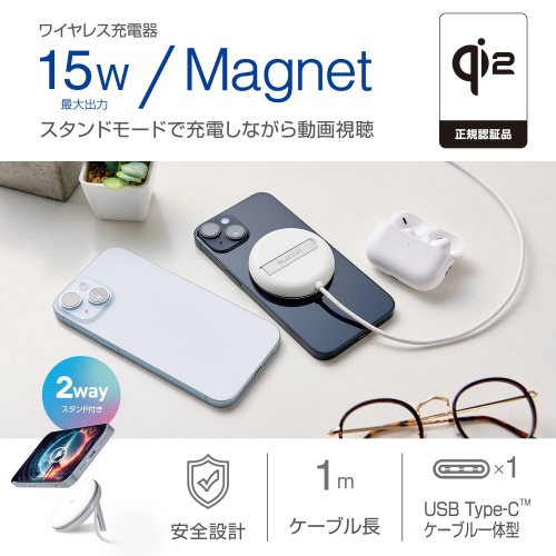 ワイヤレス充電器 Qi2対応 マグネット ホワイト