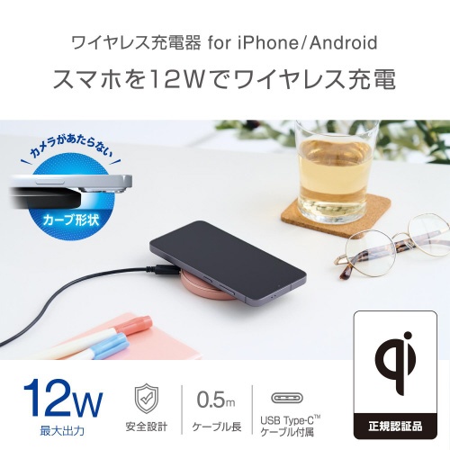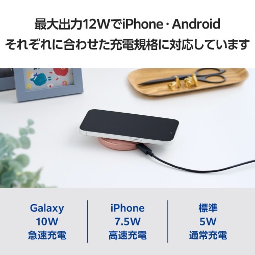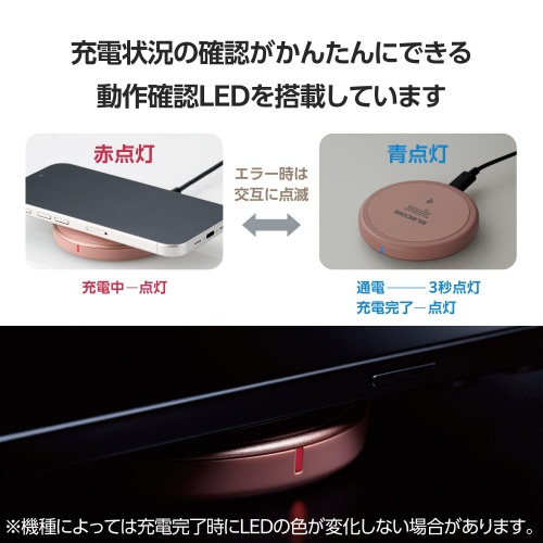 ワイヤレス充電器 Qi認証 急速充電 ピンク