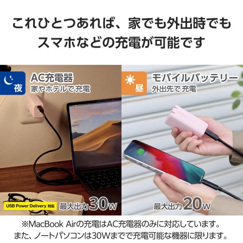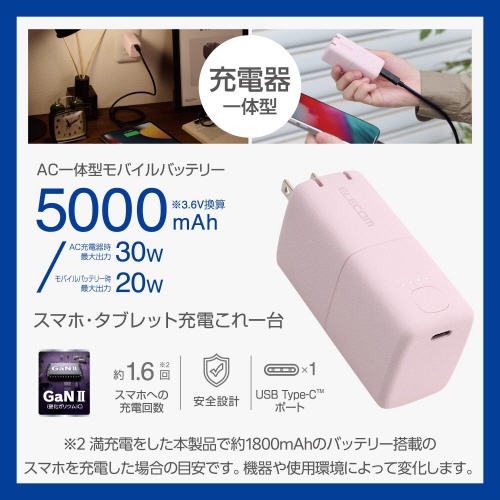 モバイルバッテリー コンセント 一体型 ピンク