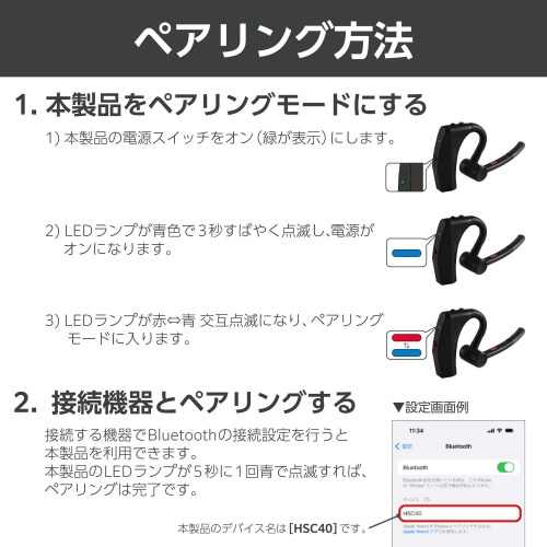 2. ヘッドセット Bluetooth 片耳 ブラック