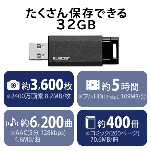 2. USB3.2(Gen1)ノック式メモリ 32GB