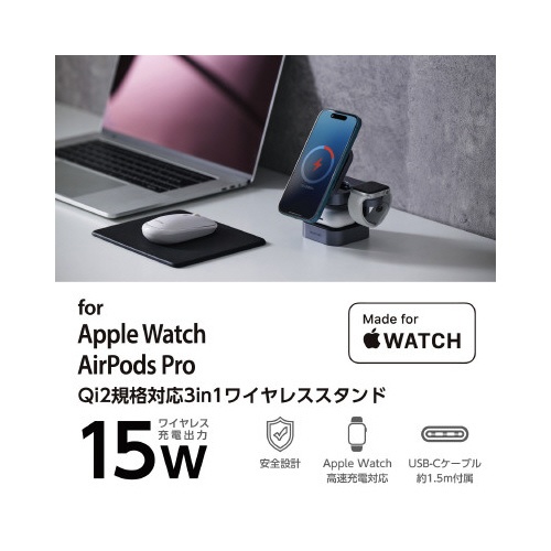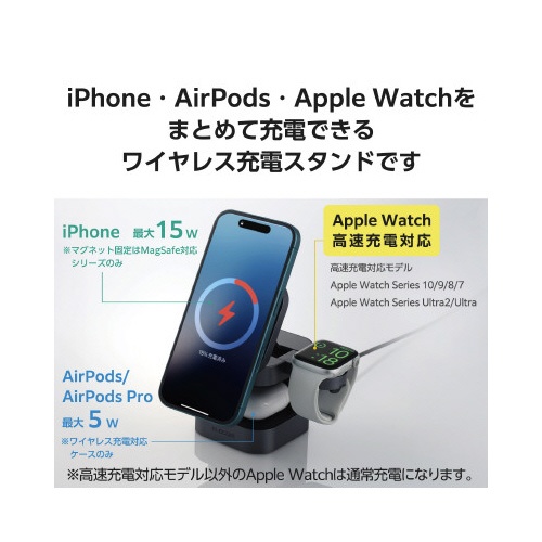 ワイヤレス充電器 Qi2対応 3in1 ブラック