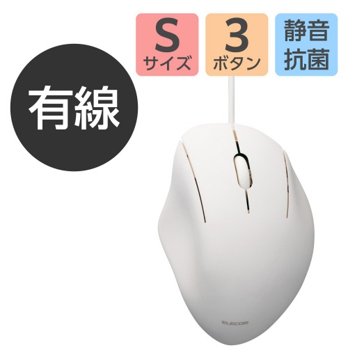 有線マウス 静音 3ボタン Sサイズ ホワイト