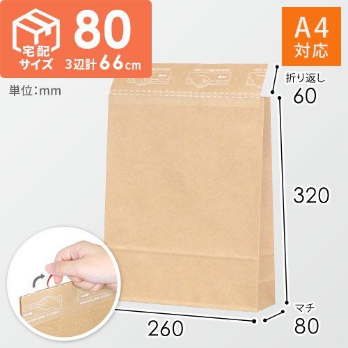 宅配袋 幅260×高さ320×マチ80mm(茶・ 開封テープ付き)