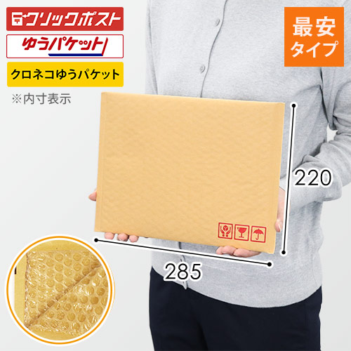 業界最安級の価格を実現!A4が入る大きさで、ゆうパケットやクリックポスト最大サイズのクッション封筒(最安タイプ)。薄くやわらかな仕上がりで口を広げやすく、梱包作業性に優れています。通販発送に最適です。
