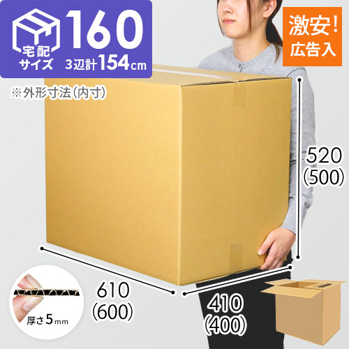 宅配160サイズで発送できるダンボール箱。強化芯使用のため、重量物や割れ物、お引越しなど様々な用途にご利用いただけます。