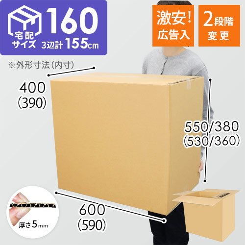 箱の深さを2段階に調節し、宅配140・160サイズで発送できるダンボール箱。収納ボックスやインテリア雑貨等、小型家具の梱包におすすめです。