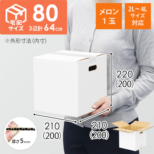 2L〜4Lサイズのメロン1玉の発送に最適なダンボール箱。宅配80サイズ対応しています。清潔感のある白色かつ丈夫な材質を使用。