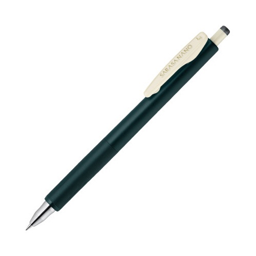 ゼブラのサラサナノ0.3mm。うるふわクッション搭載で、ガリガリ感のない、極細なのにスムーズな書き味を実現!グリーンブラックインク。