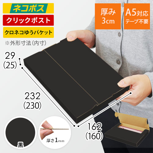 ネコポス・クリックポストサイズ、底面A4サイズの名入れ印刷メール便ケース(NPOSH29-Sと同寸法)