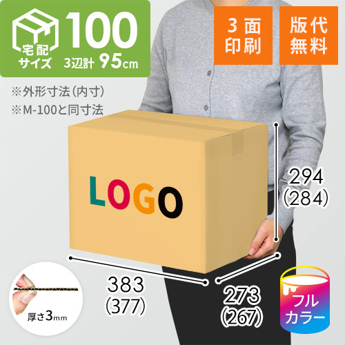 宅配100サイズ、底面B4サイズの名入れ印刷ダンボール(M-100と同寸法)