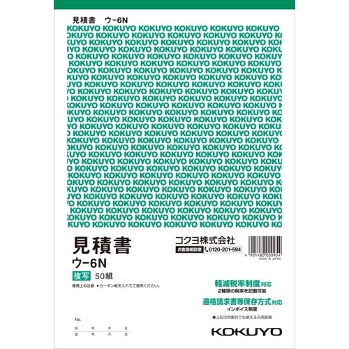 B5サイズの2枚複写見積書。50組×10冊セットでたっぷり使えます。軽減税率にも対応!