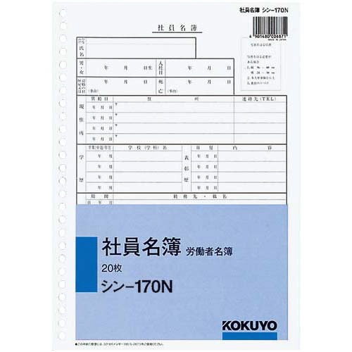 B5サイズ、26穴の社員名簿(労働者名簿)。1パック5冊入りで、各20枚の単票タイプです。