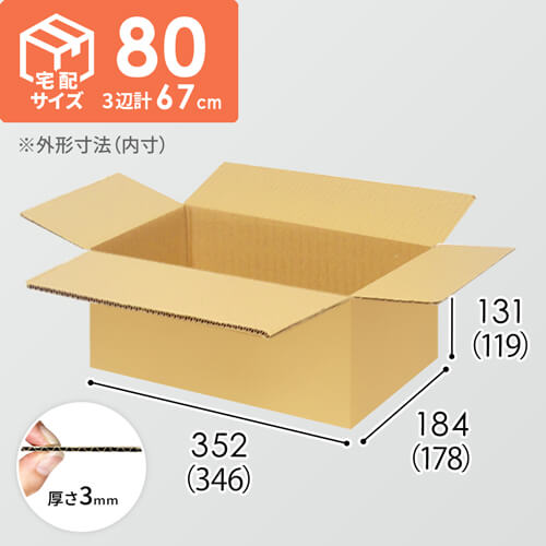 内寸346×178×119mmで、宅配80サイズ対応のダンボール箱。既存の「SBOX-03」が2箱入る大きさで、納品箱などに適しています。