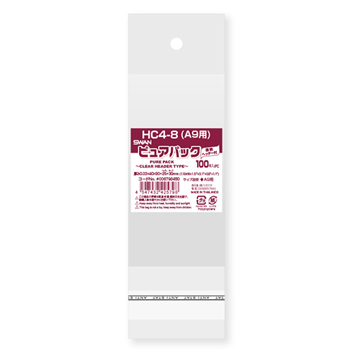 海外製フィルムを使用したエコノミータイプのOPP袋です。吊り下げて陳列できる便利な穴の開いたヘッダー付きです。食品衛生法規格基準適合商品です。