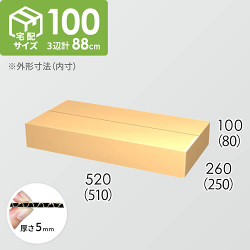 内寸510×310×80mmで、宅配100サイズに対応したダンボール箱。生活雑貨や家具、インテリア用品を扱うお客様におすすめの仕様です!