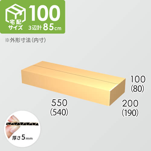 宅配100サイズ対応のダンボール(三辺合計85cm)。オーダーメイドで人気のサイズを商品化しました。隔板、金属製のプレート、厚みのある棚板などの商品発送におすすめです。