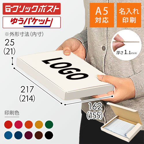 ネコポス・クリックポストサイズ、底面A4サイズの名入れ印刷メール便ケース(NPOSH29-Sと同寸法)