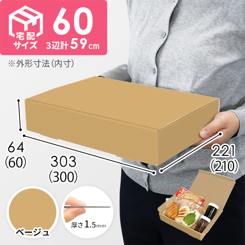 宅配60サイズ対応のダンボール(三辺合計58cm)。オーダーメイドで人気のサイズを商品化しました。食品や雑貨などの商品発送におすすめです。
