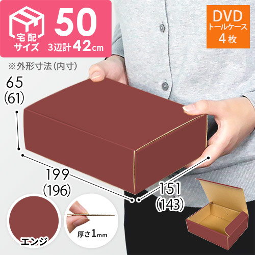 表面にエンジ色のカラーライナーを使用した宅配60サイズ対応ダンボール箱。高級感ある見た目に仕上がるため、通販商品の発送やパッケージなどにおすすめです。