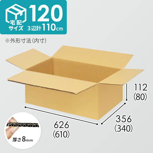 宅配120サイズ対応のダンボール(三辺合計112cm)。オーダーメイドで人気のサイズを商品化しました。重たい物や壊れやすい商品の梱包・発送におすすめです。