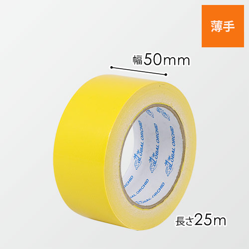 25m巻の布カラーテープ(黄)。梱包や色分け、ライン表示など様々な用途にお使いいただけます。