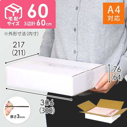 宅配60サイズで発送できる底面A4の白色ダンボール箱です。