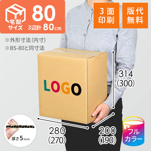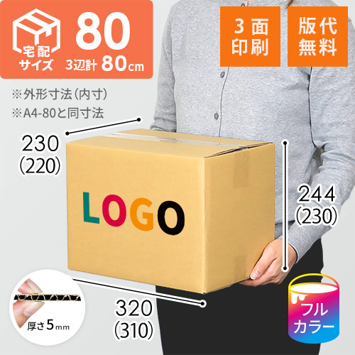宅配80サイズ、底面A4サイズの印刷ダンボール(KM05と同寸法)