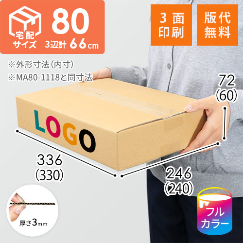 宅配100サイズ対応のダンボール(三辺合計80cm)。オーダーメイドで人気のサイズを商品化しました。小型家電や本などの商品発送におすすめです。
