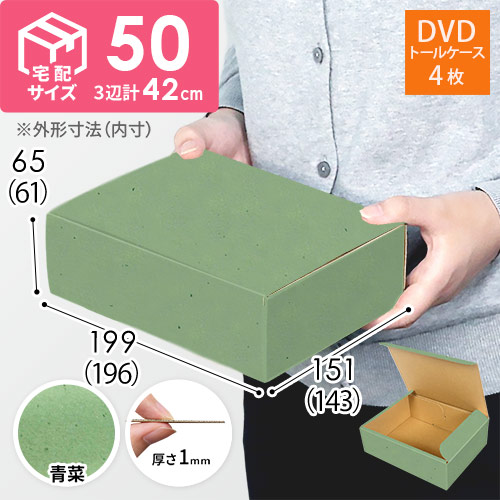 表面に青菜色のカラーライナーを使用した宅配60サイズ対応ダンボール箱。高級感ある見た目に仕上がるため、通販商品の発送やパッケージなどにおすすめです。