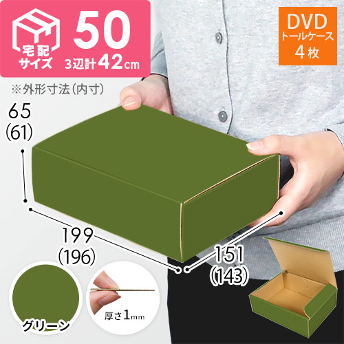 表面に緑色のカラーライナーを使用した宅配60サイズ対応ダンボール箱。高級感ある見た目に仕上がるため、通販商品の発送やパッケージなどにおすすめです。