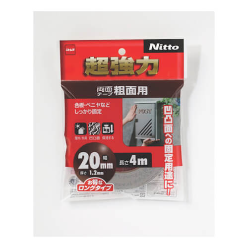 幅20mm×長さ4m×厚さ1.2mmでグレーの両面テープ。凹凸面やざらざらした面でもしっかり接着いただけます。合板やベニヤなどに。