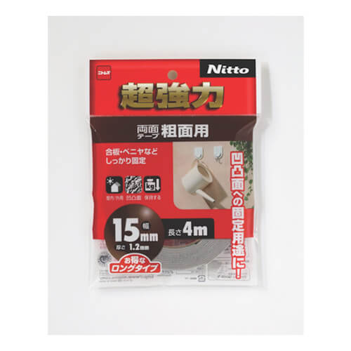 幅15mm×長さ4m×厚さ1.2mmでグレーの両面テープ。凹凸面やざらざらした面でもしっかり接着いただけます。合板やベニヤなどに。