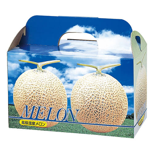 メロン5玉サイズ、9kgクラス2個にピッタリなギフトパッケージメロンのパッケージ、ギフト包装にいかがでしょうか。