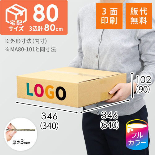 宅配80サイズの白色ダンボール箱に、お客様のロゴや社名などを名入れ印刷します。(DA002と同サイズ)