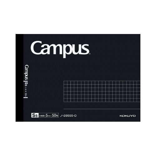 B6変形サイズで省スペース!5mm方眼罫で図表も書きやすい、50枚×5冊パック。落ち着いた黒表紙です。
